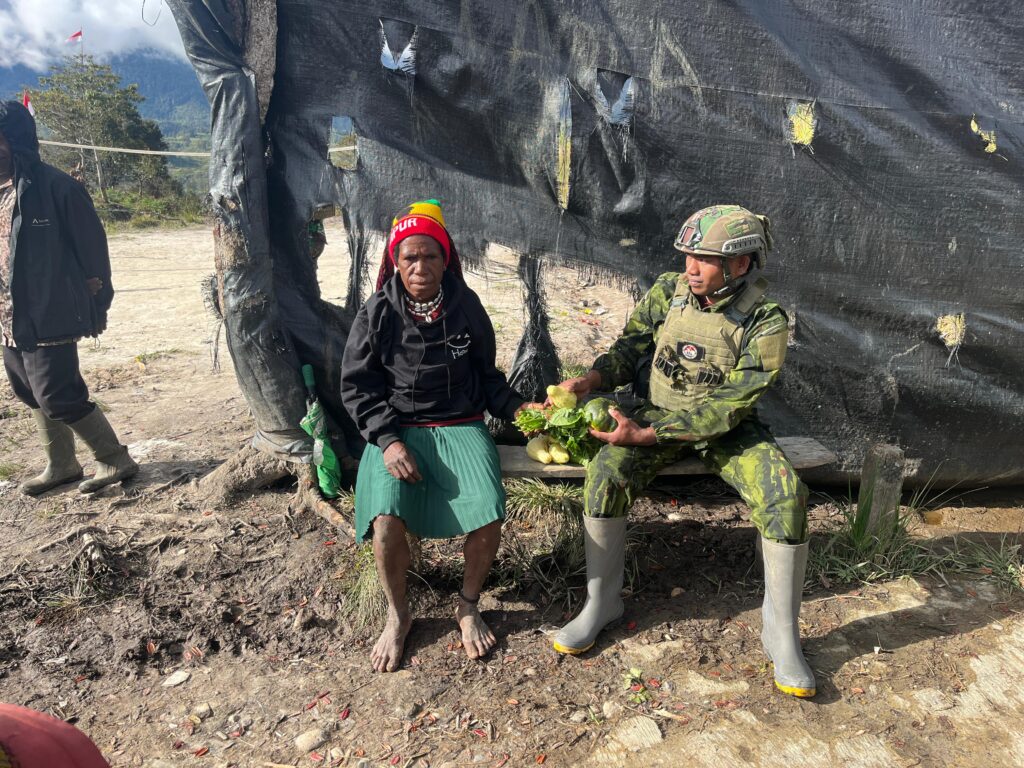 [ OMUKIA ] – Di tanah tinggi Puncak, embun masih melekat di dedaunan, sementara kabut pagi berkelindan di antara lereng gunung. Dari Kampung Eronggobak, Distrik Omukia, terdengar kabar hangat: prajurit Satgas Yonif 700/Wira Yudha Cakti Pos Eromaga menggelar kegiatan binter terbatas lewat program Rosita (Borong Hasil Tani).